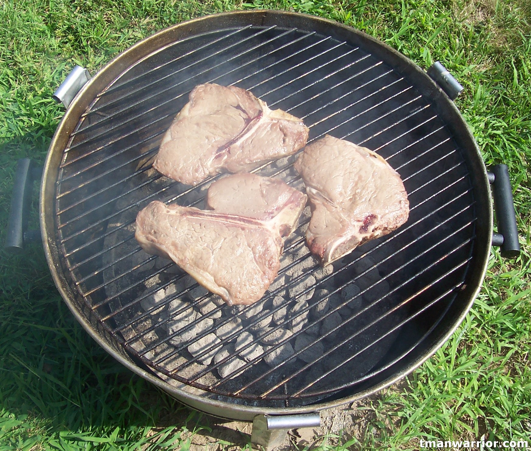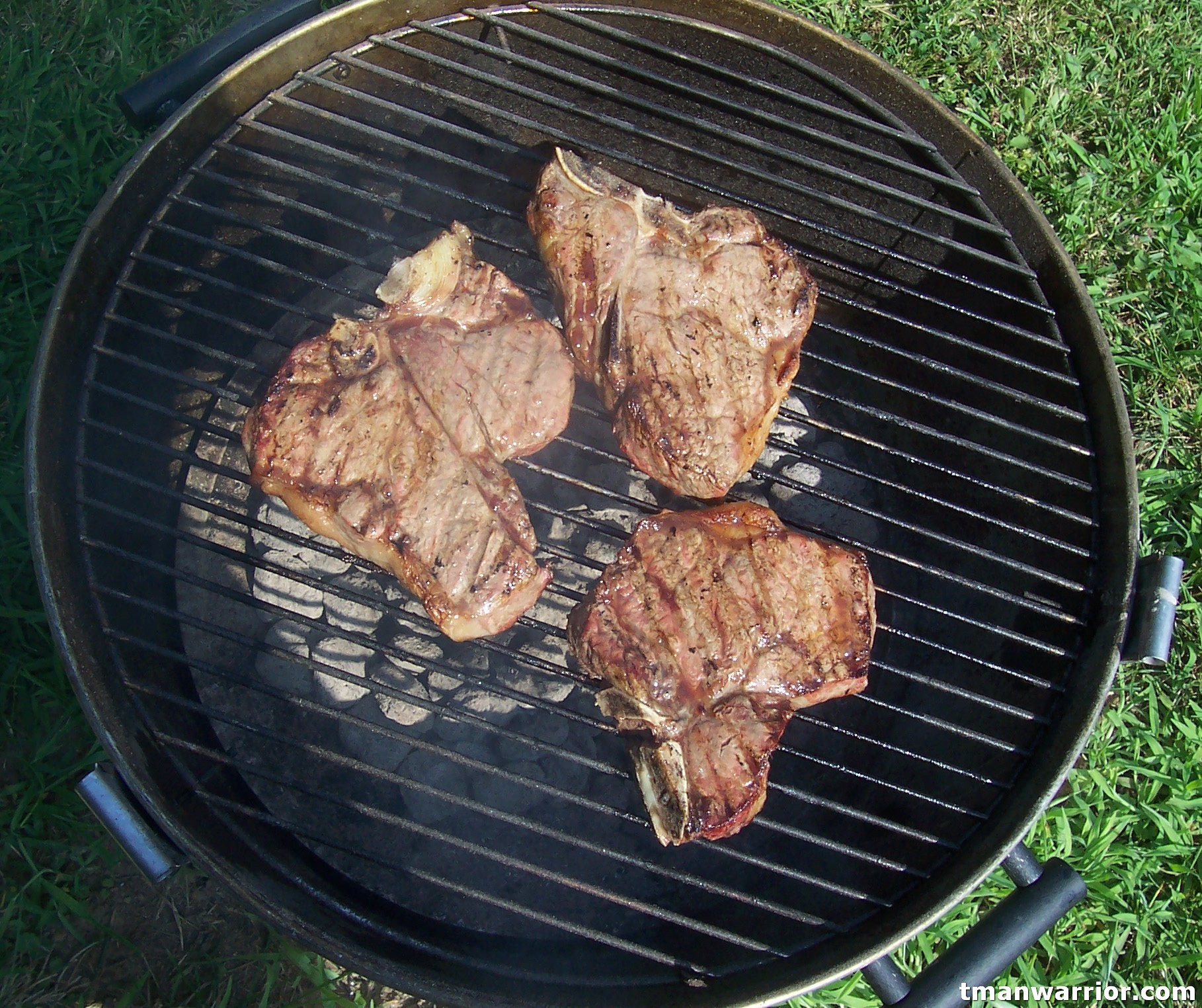 I’m grilling these three steaks you see to the right, for the wife and kids. This is after I flipped them once at the ten minute mark. All I need to do now is cook them another 10 minutes.