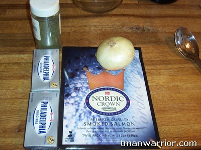If you are looking for a great smoked salmon spread recipe that is also quick and easy, look no further! This is another recipe we always make around Christmas and it rocks!!! Seriously, my wife and I love it. We like to put it on some good bread and it’s even better if you melt some asiago cheese on top in the toaster oven. Really good stuff. This is definitely an easy one, the hardest part is mixing it up. That’s my job.