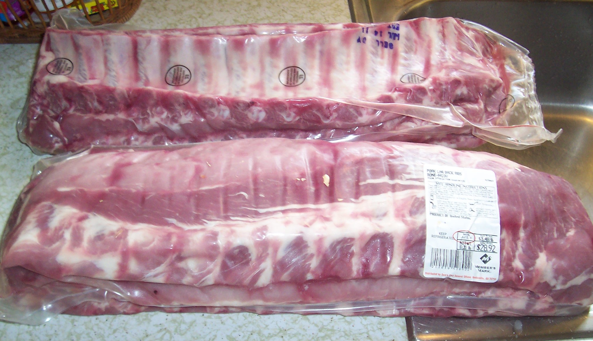Here are my baby backs. We were having a party so I got two separate packs. Mine come packed like this, the ones you buy might be different. Seems like we have been having a lot of parties lately 🙂