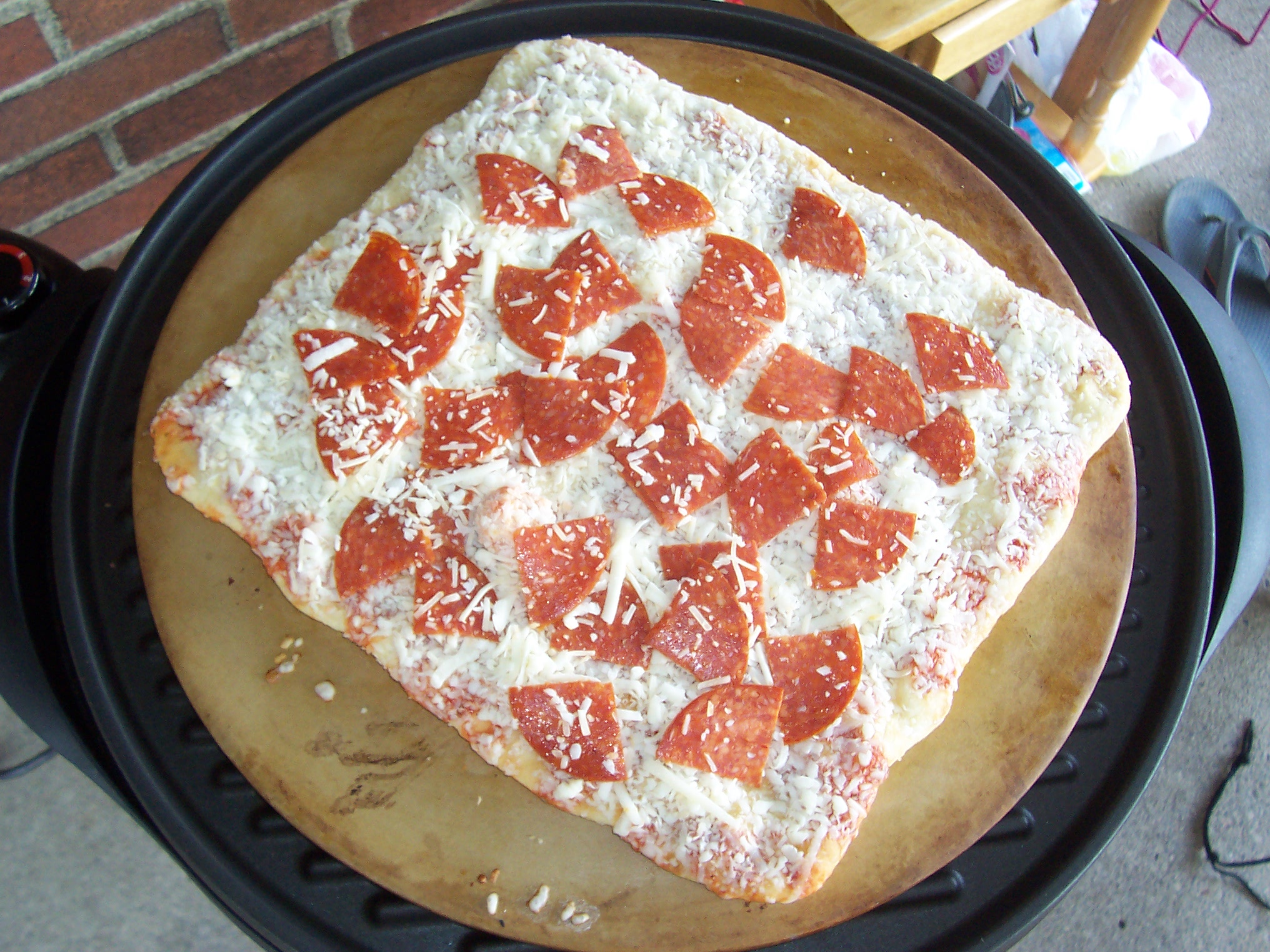 thank u so much for your site on how to cook pizza on a electric grill!had no idee,dont have a pizzastone–used regular pizza pan with all the little holes–let grill heat up about 15 min. till light went out,put pan with pizza on and 15 min. later the best pizza.Made my own pizza dough–so not frozen!!!!Will use this over and over,makes life so easyy with temp.outside 98 degree–thanks again, may help someone else ,for summerparties just great!!!!!!!!!